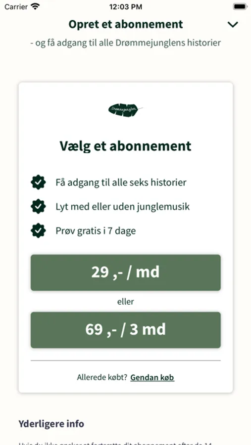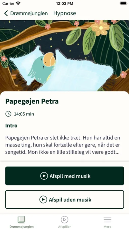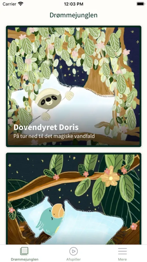 I denne app kan du lytte til alle godnathistorierne fra Drømmejunglen.