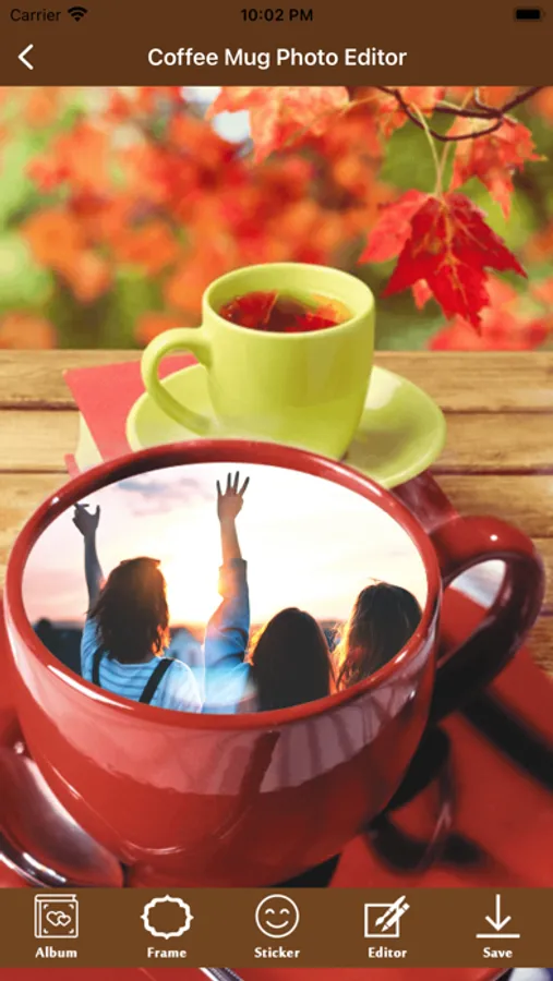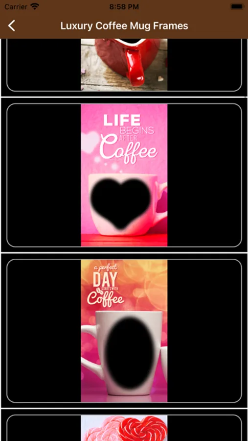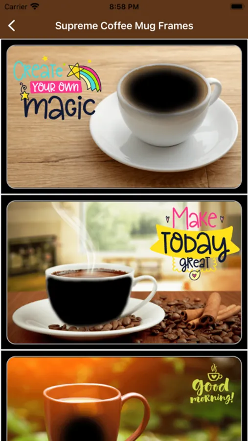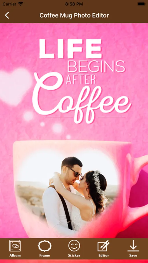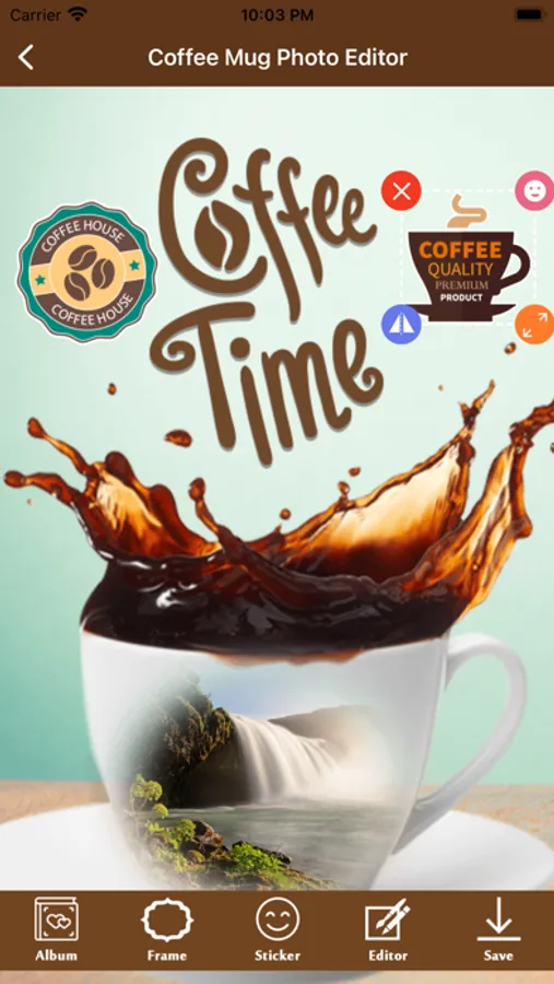 Decorate your photos and selfies with a coffee cup frame for a unique and one of kind photo for you to share on your social media.