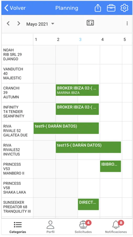 Es una aplicación para controlar a tiempo real la disponibilidad, planning y solicitudes de reservas (booking) para flotas de barcos charter. Funciona a tiempo real, por lo que todas las reservas se reflejan automáticamente en el planning conforme se generan