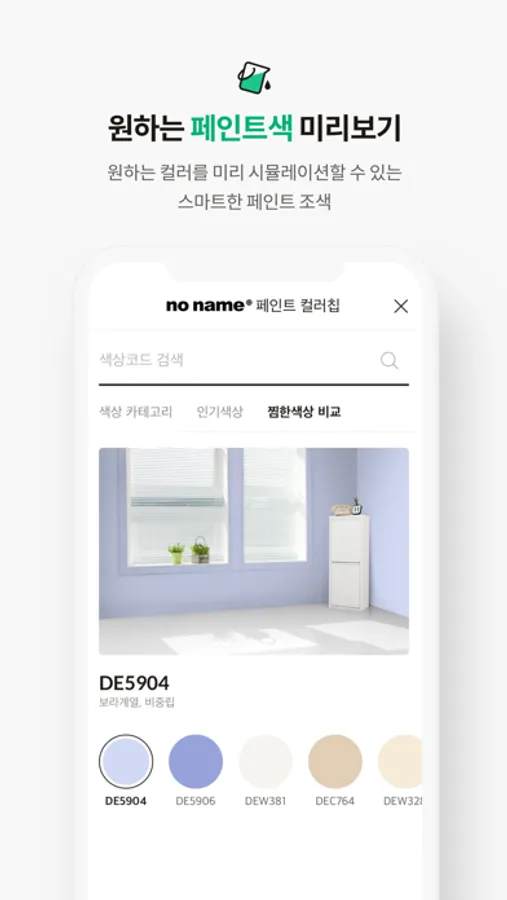 비슷한 페인트 색을 비교하면서 컬러를 편리하게 선택할 수 있습니다.