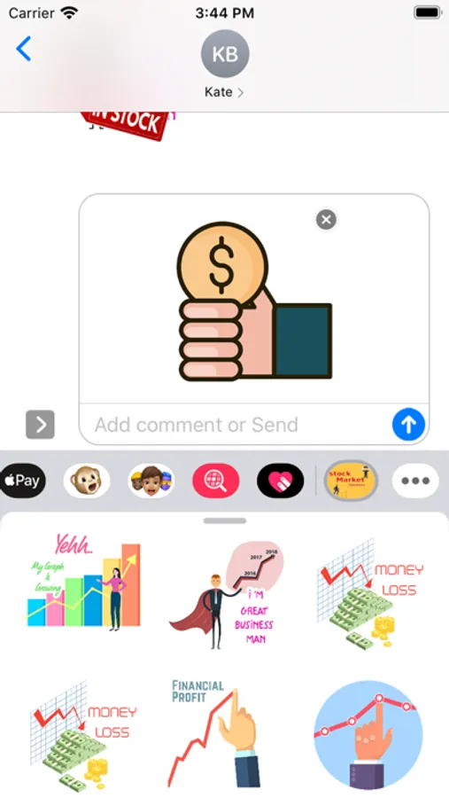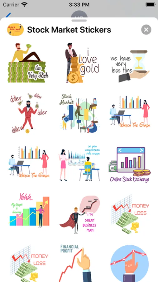 This stickers pack includes 50 expressions most commonly used words in daily stock market.