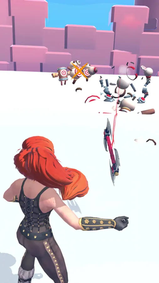 Hypercasual axe throwing game where you can show your ingenuity with a talented female character.
