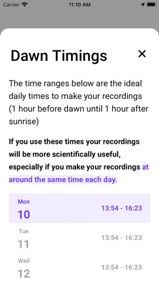 The Dawn Chorus App provides an easy-to-use, standardised recording process, and encourages you to add notes or express your creativity by uploading a photo, thoughts, or even a poem. “Sonic Feather” is a novel media arts feature, which lets you transform each of your collected sound recordings into an individual piece of art.