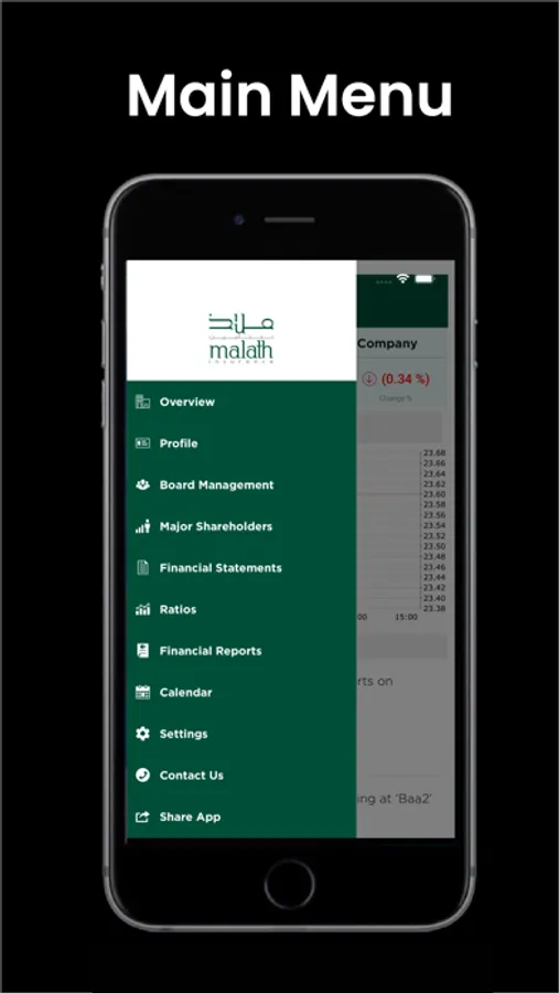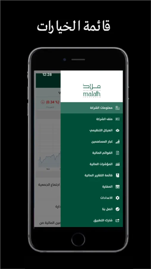 يحتوي تطبيق ملاذ للتأمين لعلاقات المستثمرين على: