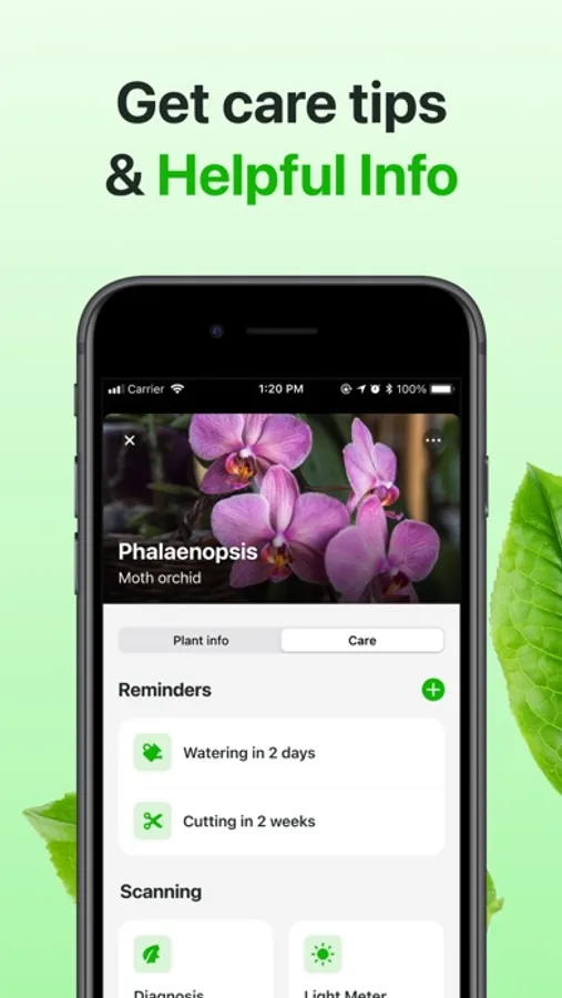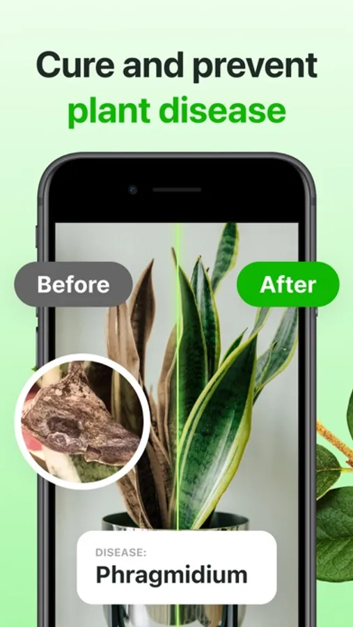Bring the plant back to life! Why doesn't the plant look healthy anymore? Perhaps the care plan was incorrect, or the plant got sick. Botan will check it out in a few clicks! Take a picture of a diseased plant and the Botan app will help you identify if your plant is healthy or determine the type of disease and give advice on the treatment and prevention of diseases. Become a real plant doctor with Botan.