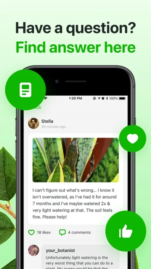 Do you have questions about plant care? Our plant care experts will help you solve any problem! Just write a message to the chat, and we will help you with any problem. Now Botan is your pocket plant consultant!