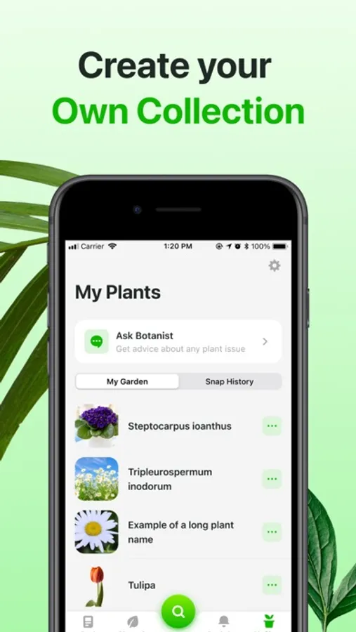 Get complete information on how much water, light, and fertilizer your plant needs to stay healthy. You will be a real plant parent! Thanks to Botan, all your questions will be answered! Immerse yourself in the world of plants with Botan!