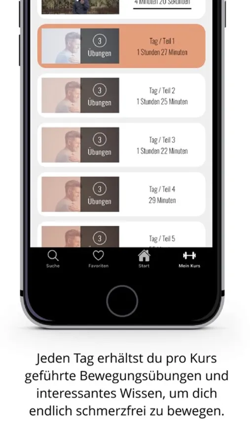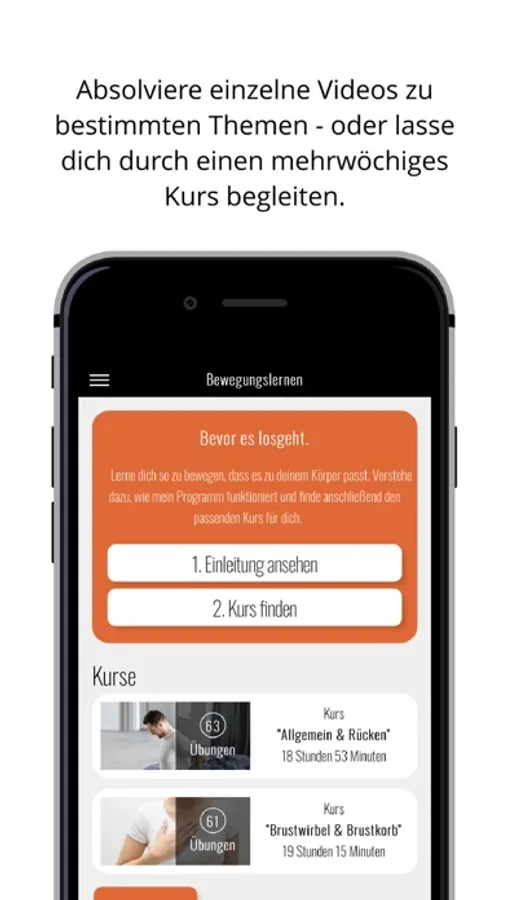 - 11 Kurse zu unterschiedlichen Themen, wie Rückenschmerz, Schulterschmerz oder Knieschmerzen
