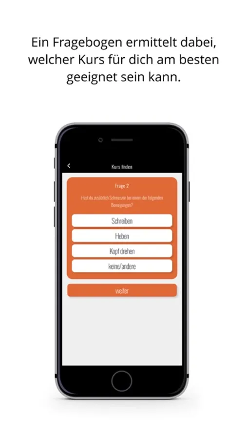Dabei lasse ich dich nicht allein! Wir haben einen Test integriert, der dir anhand von deinen Antworten zeigt, welcher Kurs für dich der geeignete sein könnte - und in diesem mehrwöchigen Kurs zeige ich dir jeden Tag, welche Übungen heute für dich sinnvoll sind. Aber ganz ohne Druck - du kannst jederzeit aussetzen oder sogar den Kurs wechseln.