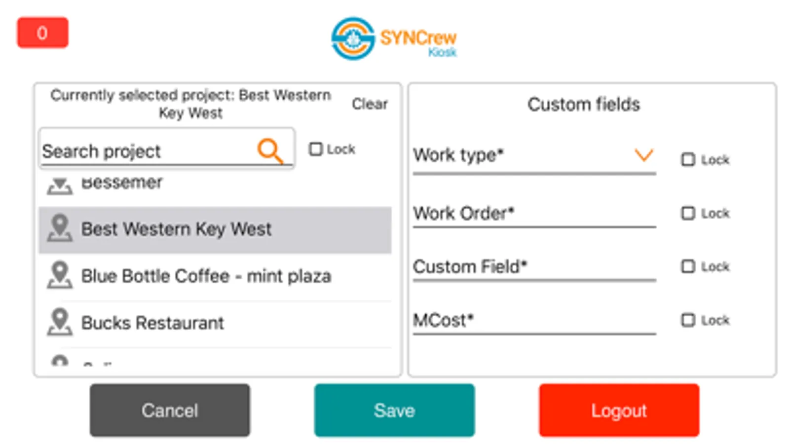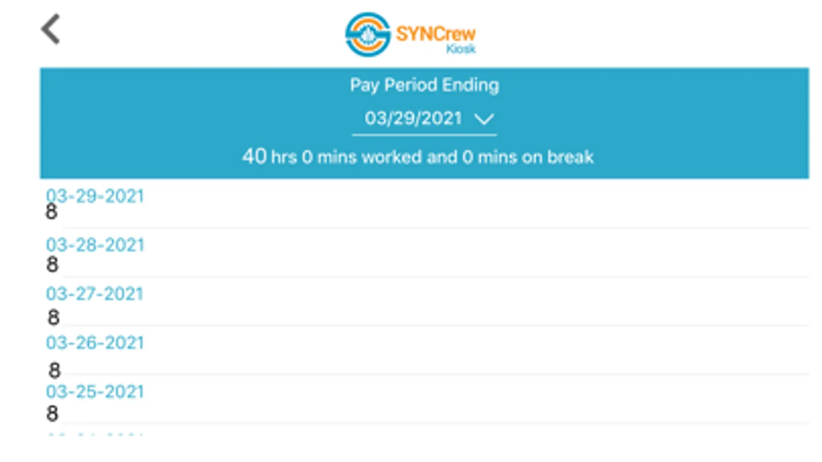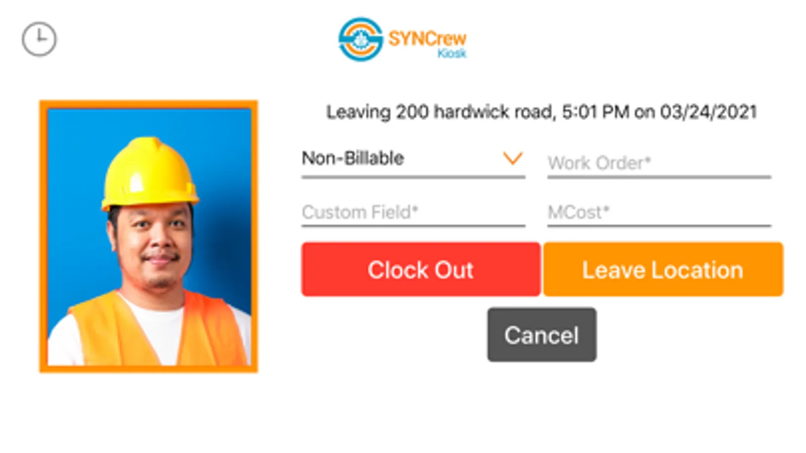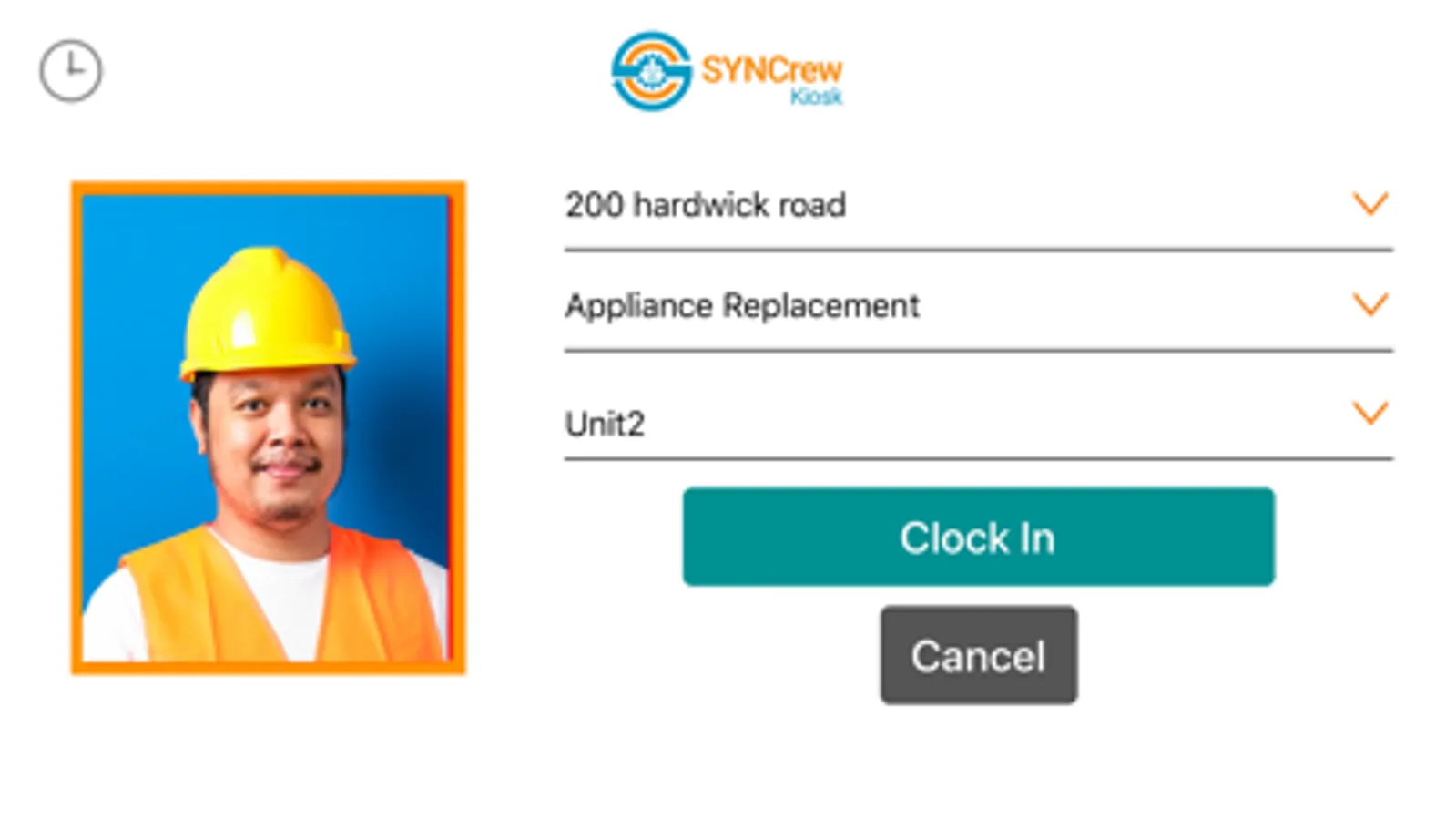 The SYNCrewKiosk app is designed for tablets but also works on smartphones. It allows employees to clock in on a single device on site and takes photos of the employees at cocking, preventing buddy punching. You can use it with the same SYNCrew account for regular smartphone users
