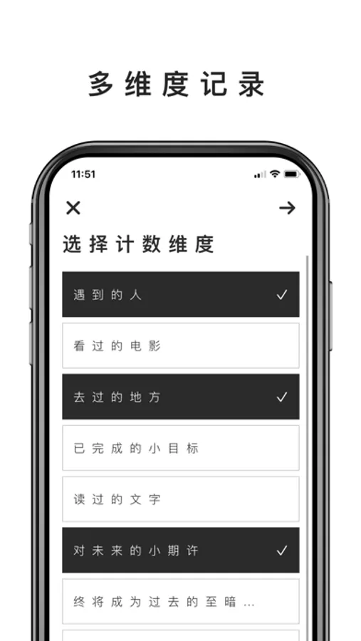 除去多余的修饰、多样的玩法,仅专注于文字的记录和数字的累积,这是《人生计数器》的设计原则。从远古的结绳记事,到现代的数据统计,多少人物、多少事件、多少故事,累积成了数字,直观又强烈。