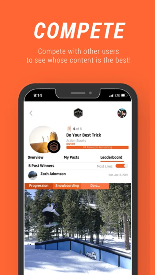 The DIVERT Challenges App allows users to progress and compete in content-based challenges in action sports, creative skills and more!