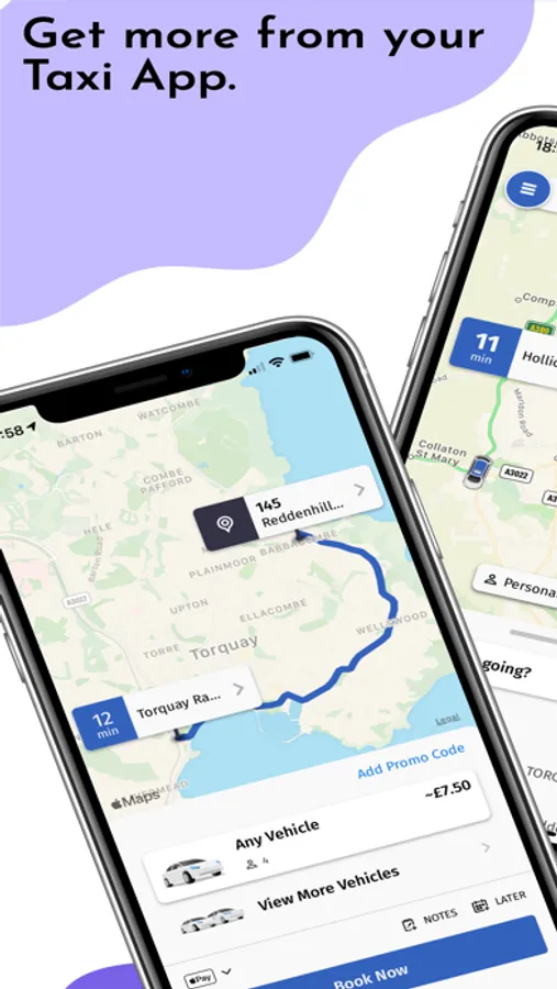 Track your car as it arrives on a map, or call the driver when he's nearby. No more guessing where your Cab might be. Book ASAP or pre-book with a range of payment options, including native payments with apple and google or if you prefer cash, card and business account.
