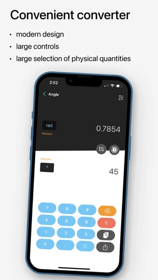 • Copying and pasting values from the clipboard in one tap allows you to perform many calculations faster.