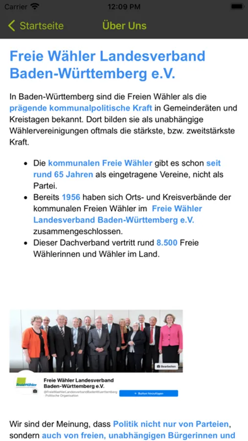 Der Freie Wähler Landesverband Baden-Württemberg e.V. jetzt auch mobil.
