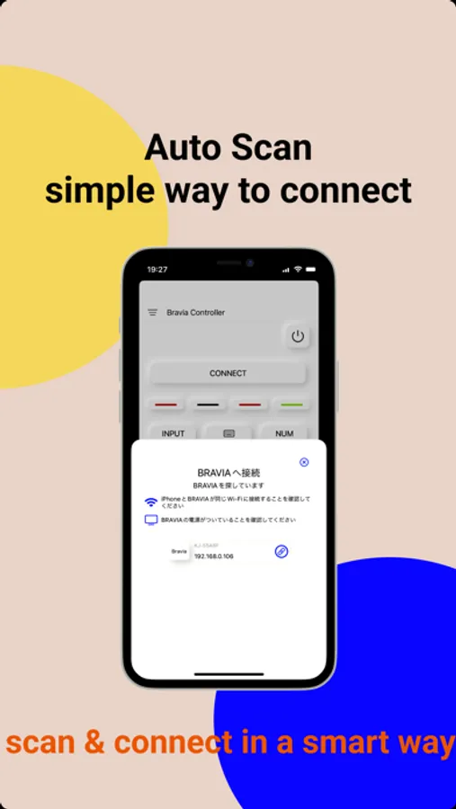 Bravia Controller can automatically scan your local network to detect your BRAVIA TV and provide a simple way to connect. You can also manually input your BRAVIA TV's IP address.