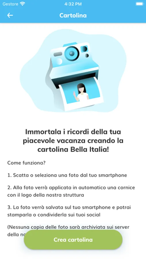 Tramite l’app sarà infine possibile visualizzare tutti i servizi dedicati per ogni struttura, scattare una foto ricordo del proprio soggiorno e ricevere comode notifiche push per restare sempre aggiornati sulle ultime novità ed offerte.