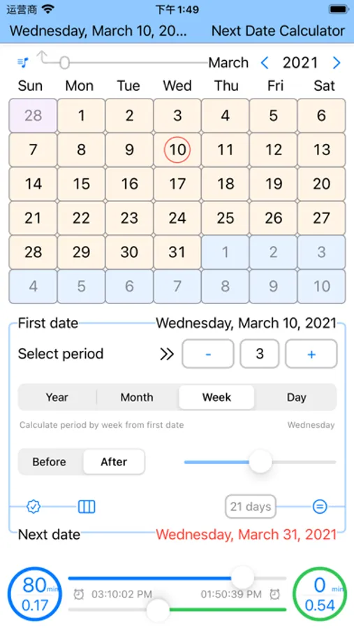 You can simply calculate the previous date or the next date. Compare multiple sets of dates and get the difference. You can to calculate the difference between more group dates, such as: age date, work plan date.