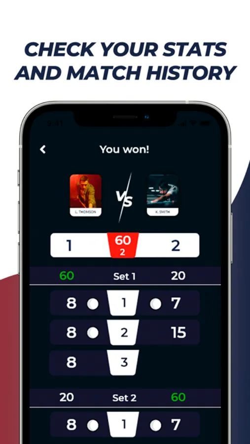 Find the player you want to challenge, choose the game mode and number of sets. Place your camera like pro players in our online tournaments and start your game!