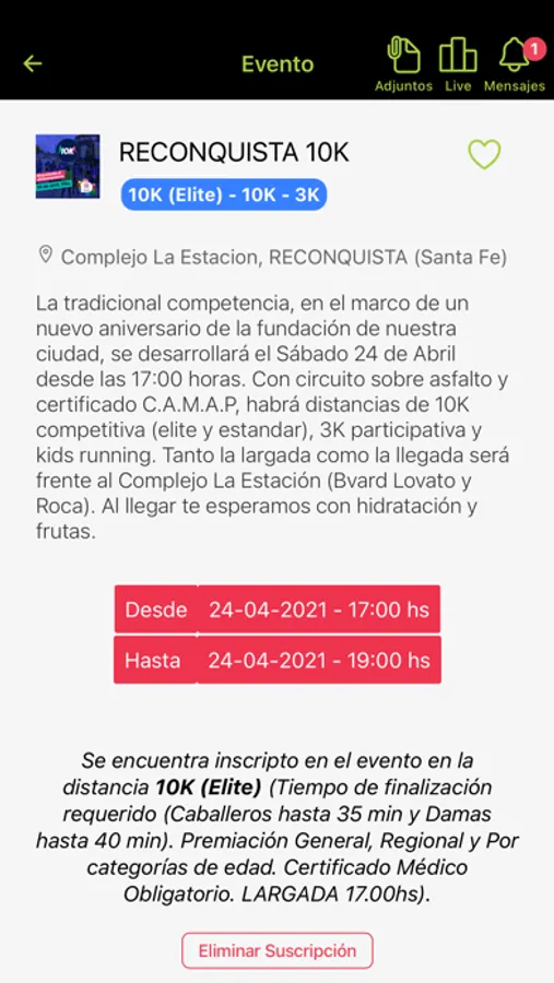 Podrás inscribirte y participar de eventos deportivos (incluso de aquellos virtuales). Tendrás a tu disposición estadísticas de desempeño, estar al tanto de las novedades de tus competencias favoritas.
