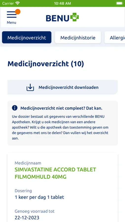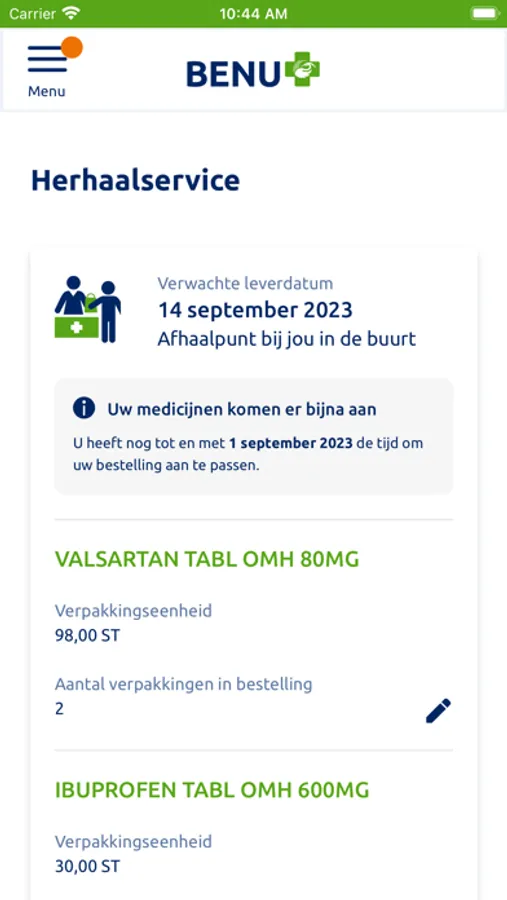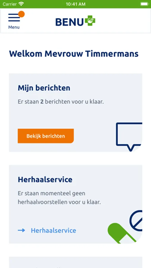Met Mijn BENU heeft u altijd uw medicijndossier bij de hand, kunt u eenvoudig contactgegevens bijwerken en makkelijk een herhaalvoorstel goedkeuren.