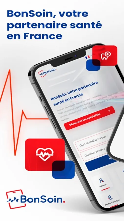 bonSoin est une application qui vous permet de trouver un médecin près de chez vous, de voir ses disponibilités ou même de prendre un rendez-vous sans besoin de vous déplacer. Elle vous permet également d'avoir une teleconsultation; et peut aussi permettre au médecin de rédiger une ordonnance numérique qui sera envoyer au pharmacien. Cette application dédiée aux médecins et non seulement les patients, vous permet de gérer vos patients et leurs dossiers médicaux grace à la fonctionnalité d'enregistrement d'historique, ce qui rend le dossier médical mobile et peut être envoyé vers un autre médecin si le patient change son médecin. Non seulement ça, mais elle est dédiée aussi aux centres médicaux et permet de gérer chaque département ou spécialité
