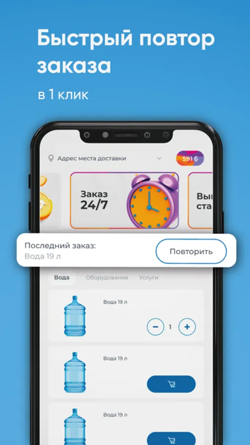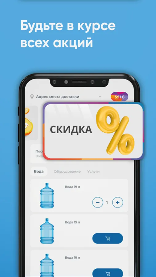 Заказать воду в приложении «KING-AQUA Якутия» просто и быстро. Все товары собраны по категориям. Добавляйте нужные позиции в корзину и оформляйте заказ в любое время суток.