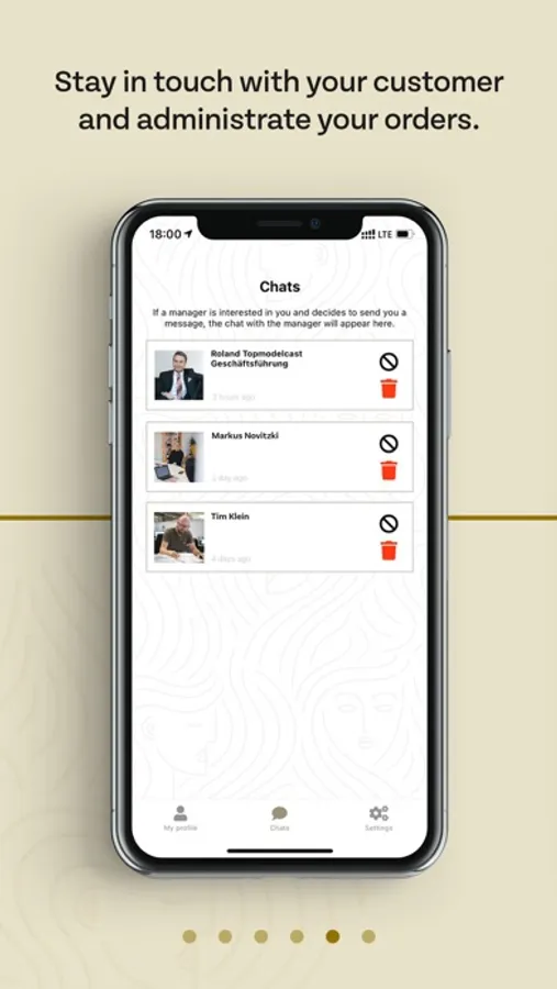 Now fill out your profile and upload photos of yourself. After our review and approval of your entries, you will be visible to our customers. The approval usually does not take longer than 24 hours.