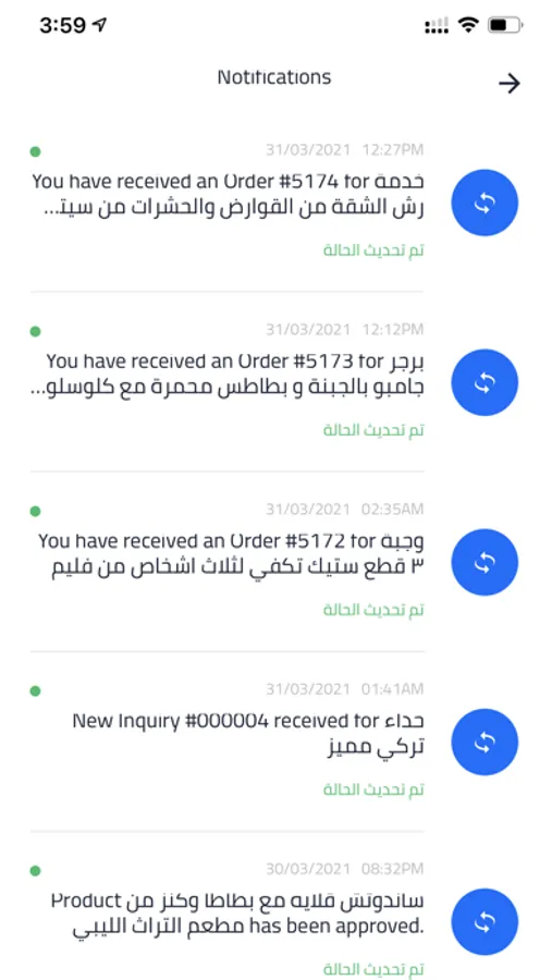 - تنبيهات عند الشراء وتنبيهات عند تغيير الحالة