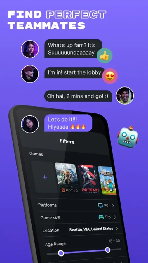 You can find new friends with similar interests thanks to a wide search in your city or even worldwide., You can filter the results by games, platforms, game skill level and statistics, and much more!.