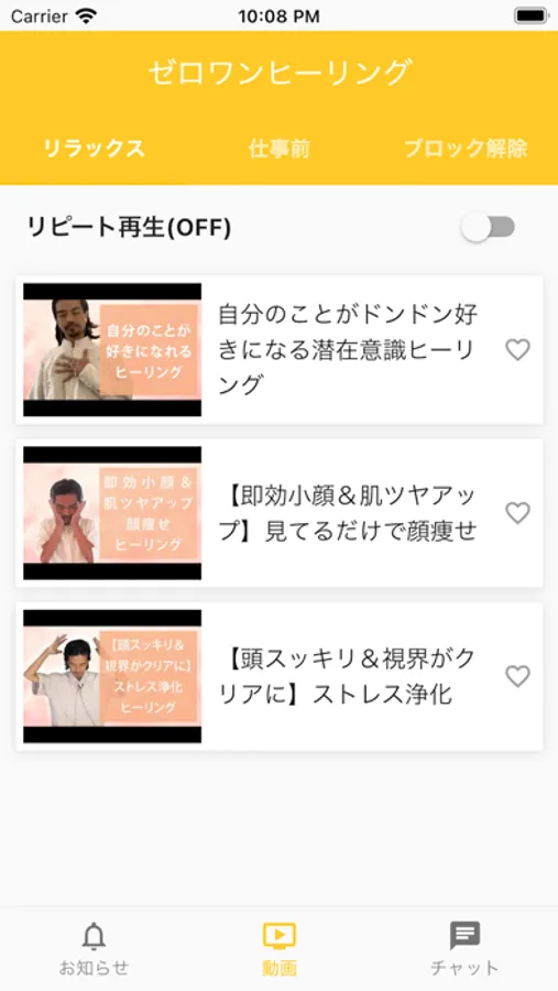 リラックスしたい時、出勤前、ブロック解除などタイミングに合わせて動画でヒーリングを受けられます。