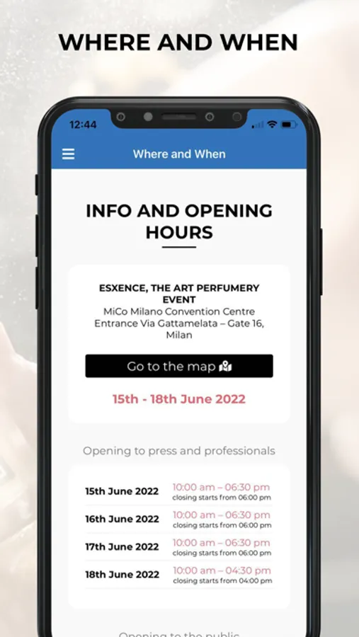 The Esxence App will allow you to have all the information you need to visit the event at your fingertips, such as the map of the exhibition, the program, the events calendar (conferences, workshops, etc), the brands list, news and press releases for professionals and enthusiasts.