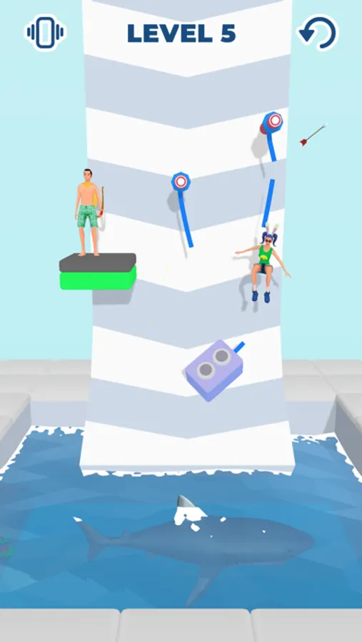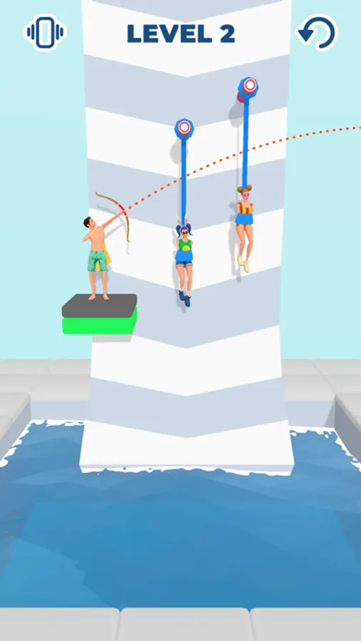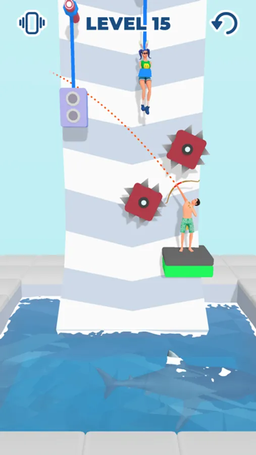 Are you good at aiming? Then help the girls escape the trap! Shoot the ropes with your bow! But do it timely, so the swimming nearby shark does not eat them all!