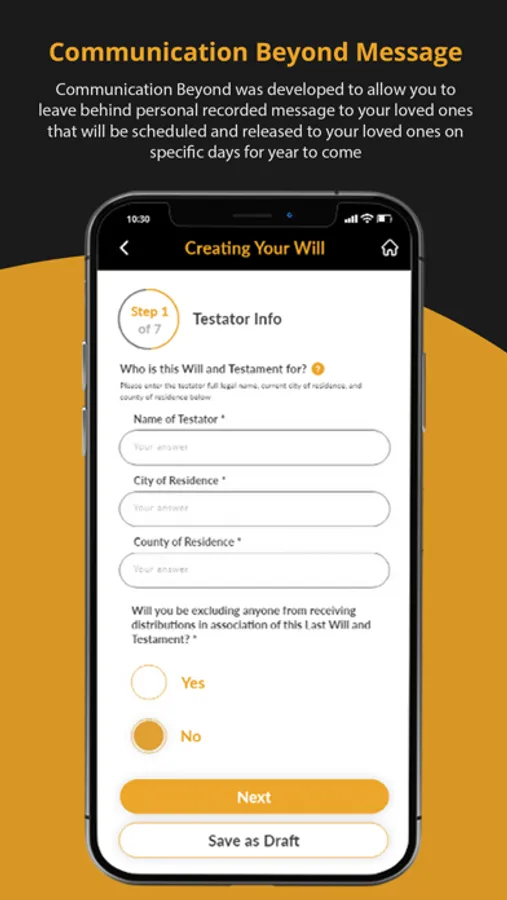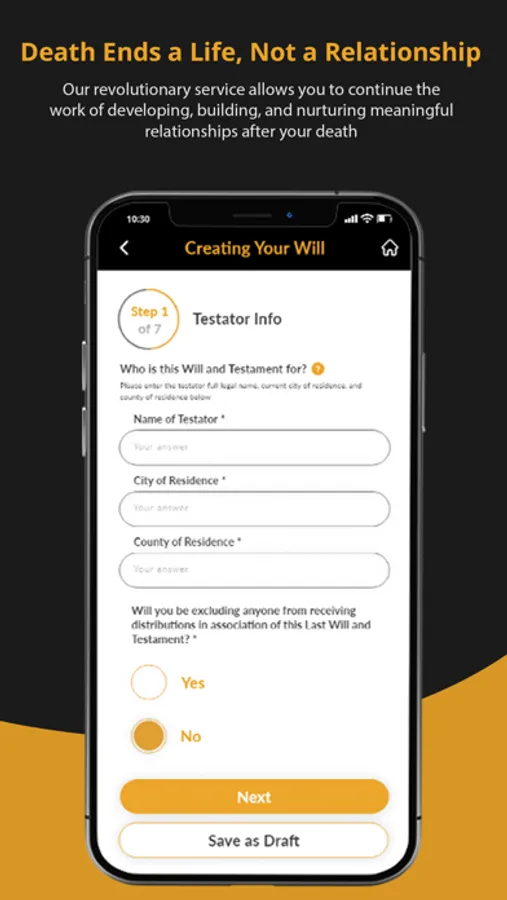 As an additional feature, the FREE Will and Testament service allows you to create your Will and Testament from any device at any time. Just print and sign your Will in front of two witnesses, have them sign the Will and keep in a safe place. Join us on this journey as we invite you to take charge of your life and your legacy.