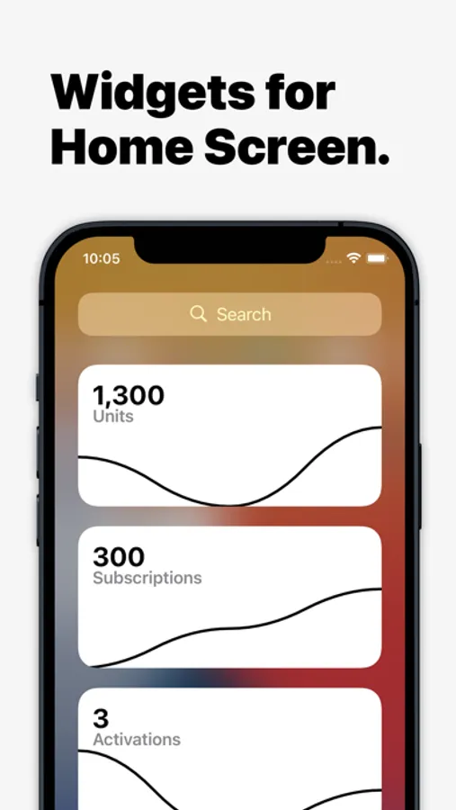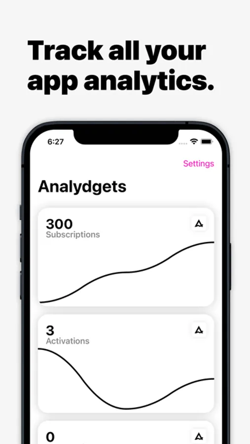 Analydgets offers clean and customizable Widgets to help you track your app analytics over time. Create your own personalized feed of metrics in-app or even placed on your Home Screen using Widgets.