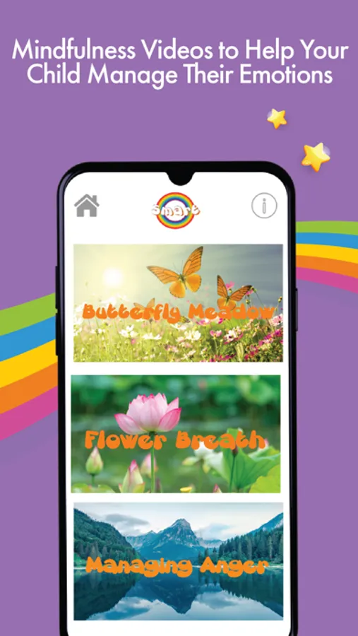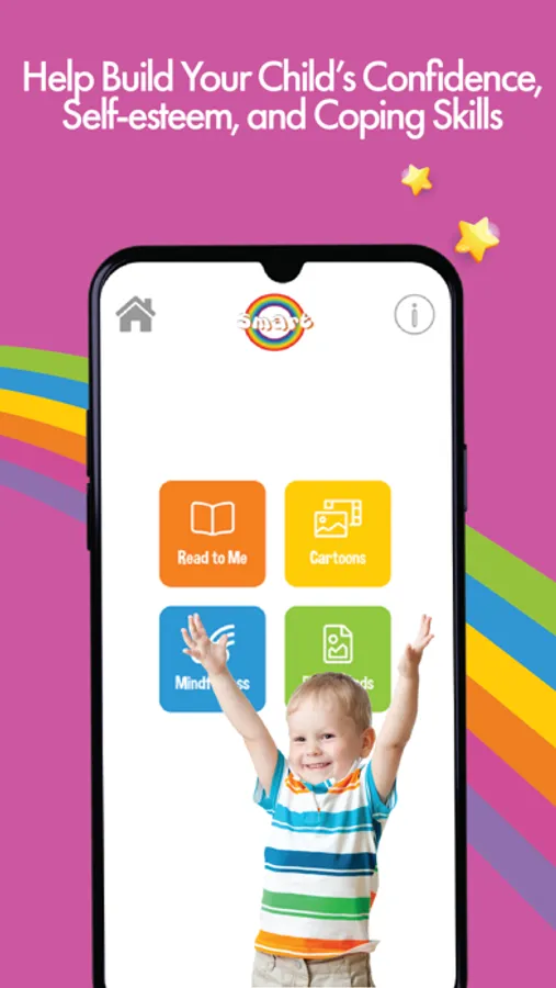 Our RainbowSmart app currently offers 80 delightful, high-quality cartoons and read-to-me storybooks. These are short animations all with a specific theme linked to real-life scenarios that children may face now, or in the future. We also provide mindfulness videos that have been specially created to support young children. These videos take children on a journey through a short mindfulness story and can be used throughout the day or before bedtime. To support learning further we have also created over 200 flashcards to support children in their communication, particularly communicating their feelings and emotions.