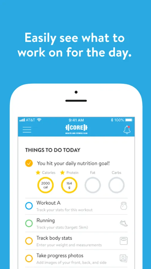 With the Core Family Fitness App, you can start tracking your workouts and meals, measuring results, and achieving your fitness goals, all with the help of your personal trainer.