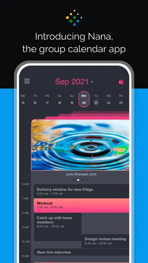 Nana Group Calendar App. Easily coordinate busy calendars with groups of friends, family and contacts. Save your favorite photos across calendars, groups, contacts and events.