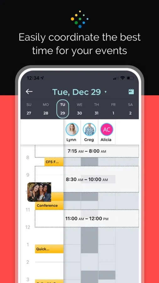 Find the best time to schedule an event. When creating an event, in just a few taps you can easily find an available time for everyone on the invite.
