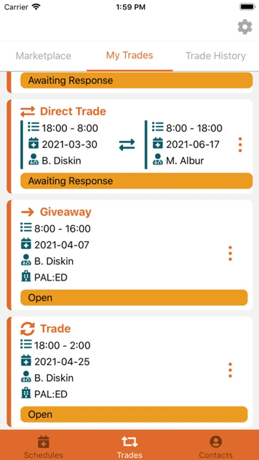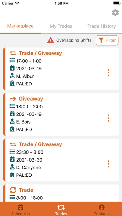∙ Create direct trades with your co-workers. Choose which shift you want to giveaway, and which shift you want to receive