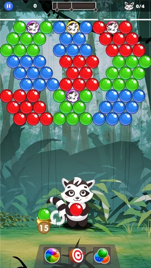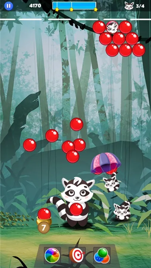 Match colored bubbles to save raccoons from evil monkeys.