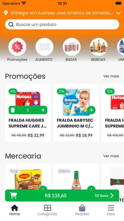 Deixe de carregar o peso das compras, receba os produtos no conforto da sua casa. Economize tempo, despesas com transporte, stress no trânsito e nas filas.