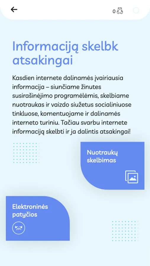 Šioje programėlėje kviečiame sužinoti dar daugiau, atlikti įvairias praktines užduotis ir surinkti kuo daugiau Draugiško interneto meškiukų!