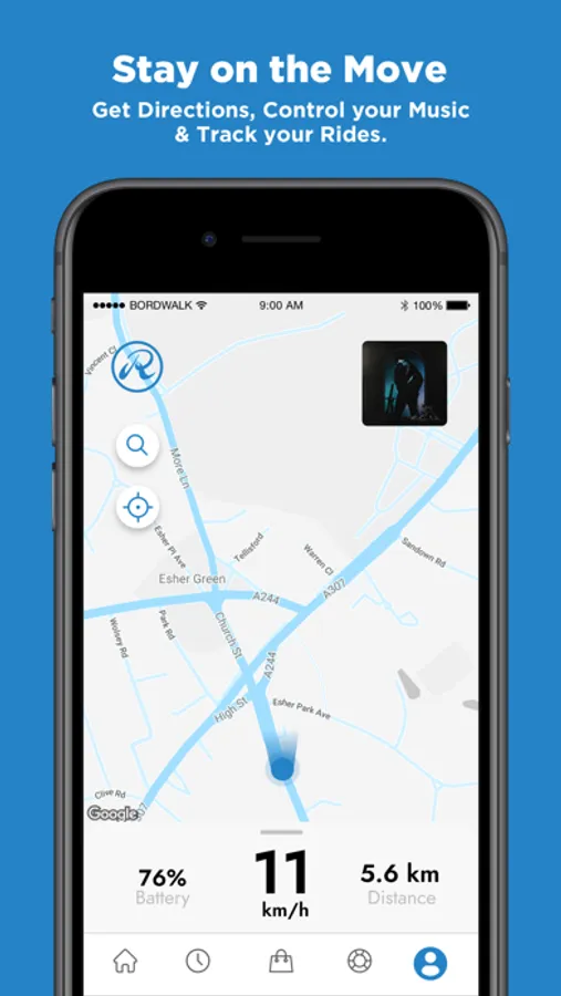 With Riley Scooters, rethink how you get there. Stay on the move with our app which connects directly to your scooter through Bluetooth. Get directions, view key riding info, control your music & track your rides effortlessly.