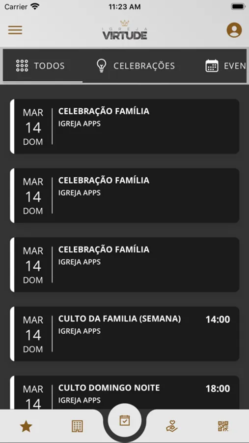 O APP permite o relacionamento entre a Igreja Virtude e seus membros ou visitantes.