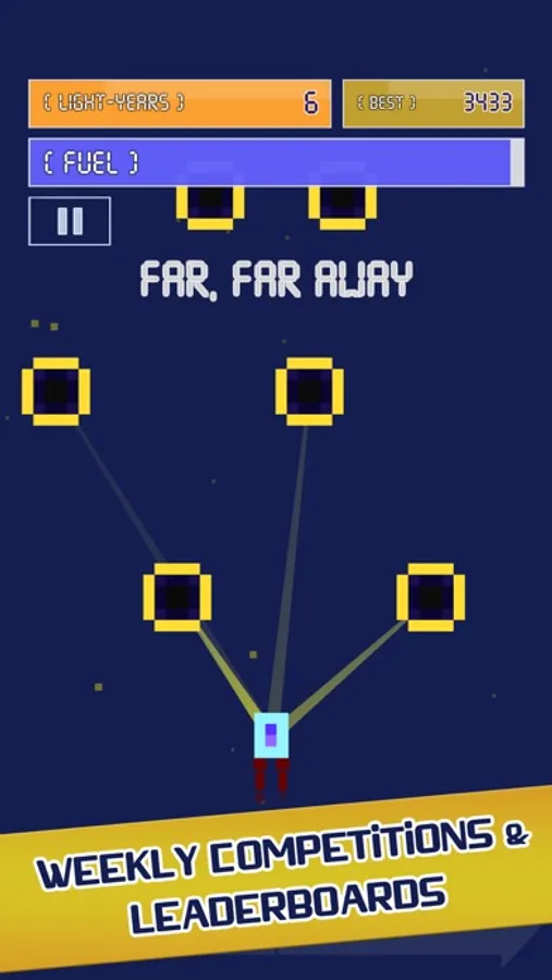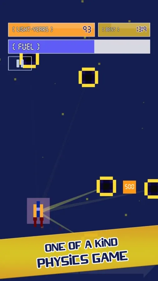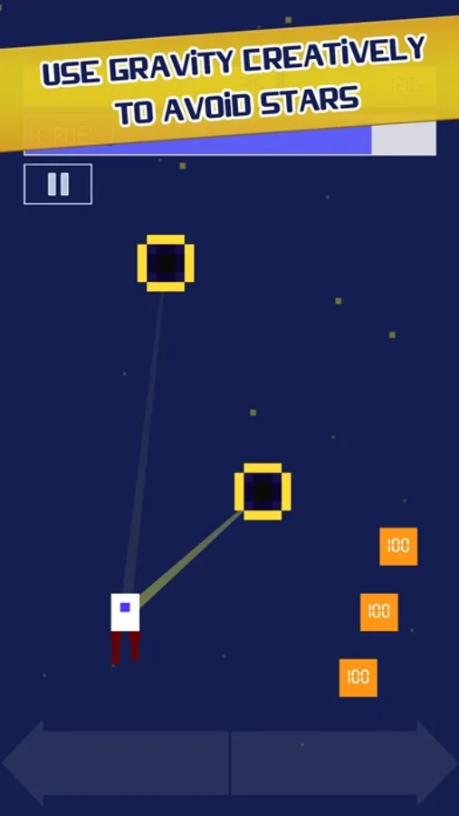 Show your skills by avoiding stars along the way. But watch out! The closer your rocket is to a star, the stronger the star's gravitational pull is. Sometimes gravity may help you, and sometimes it may create troubles.