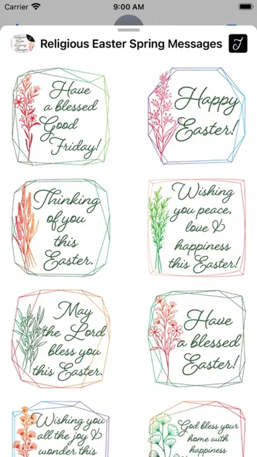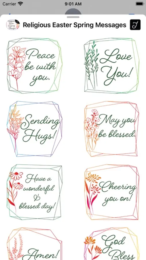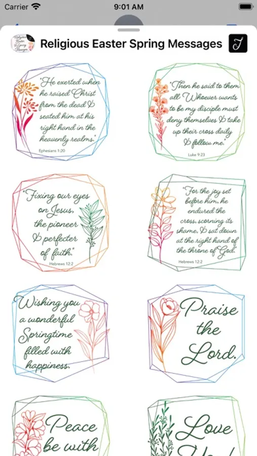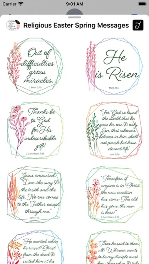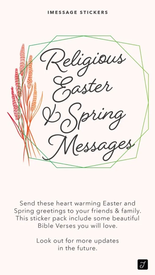 All the verses & greetings are designed with decorative flowers and beautiful geometric background. This stickers pack comes with carefully selected Bible verses that are great to send out during the Easter holiday, they are inspiring and encouraging. Send it to your friends & family or someone that you would like them to know about GOD, this will be a good way to start the conversation.
