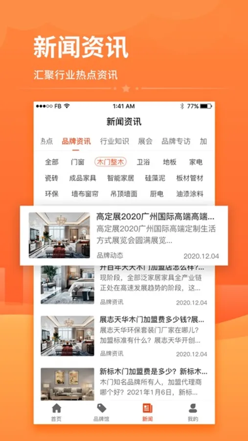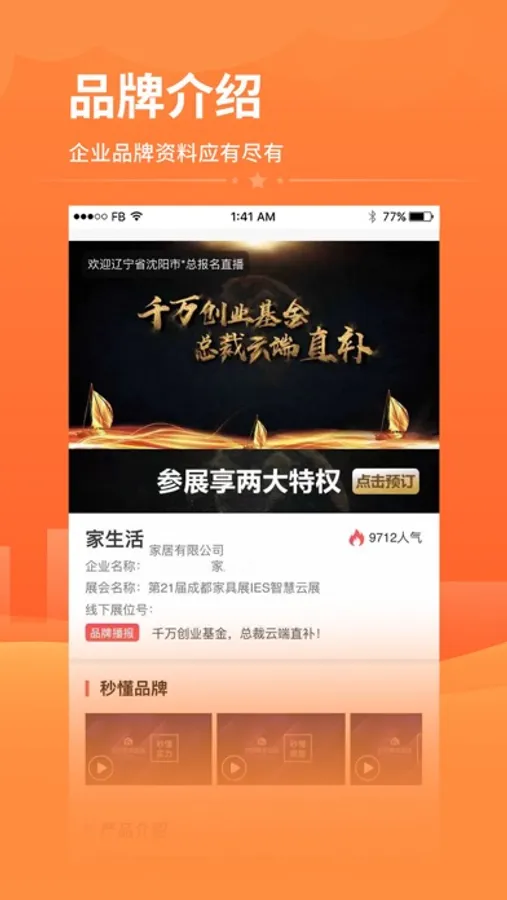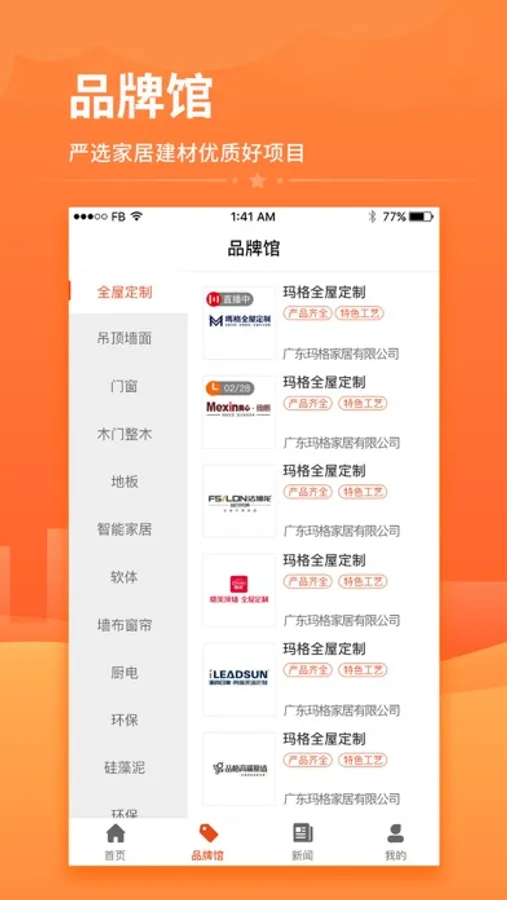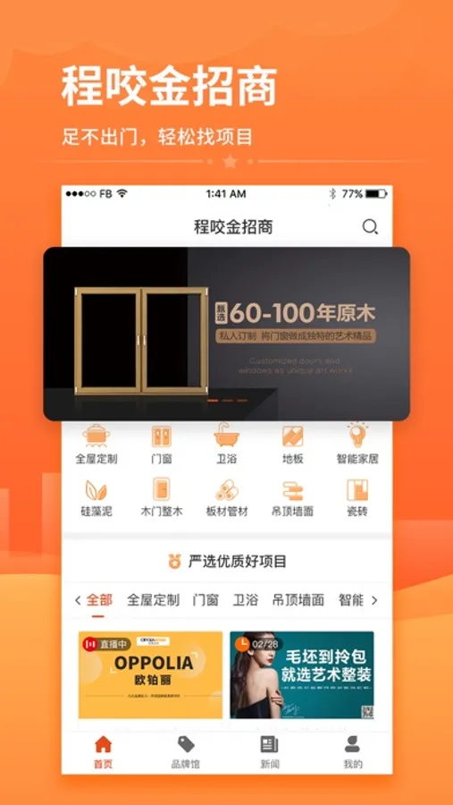 程咬金招商APP是一款家居建材行业的招商加盟软件,家居建材行业数十种品类数百家优质品牌入驻并进行品牌展示,经销商通过APP了解品牌详情进行对比或直接给心仪品牌进行留言沟通。厂家和经销商通过软件建立招商加盟关系,厂家可以招商拓展销售渠道,经销商可以加盟优质品牌代理。