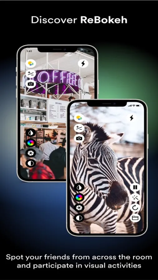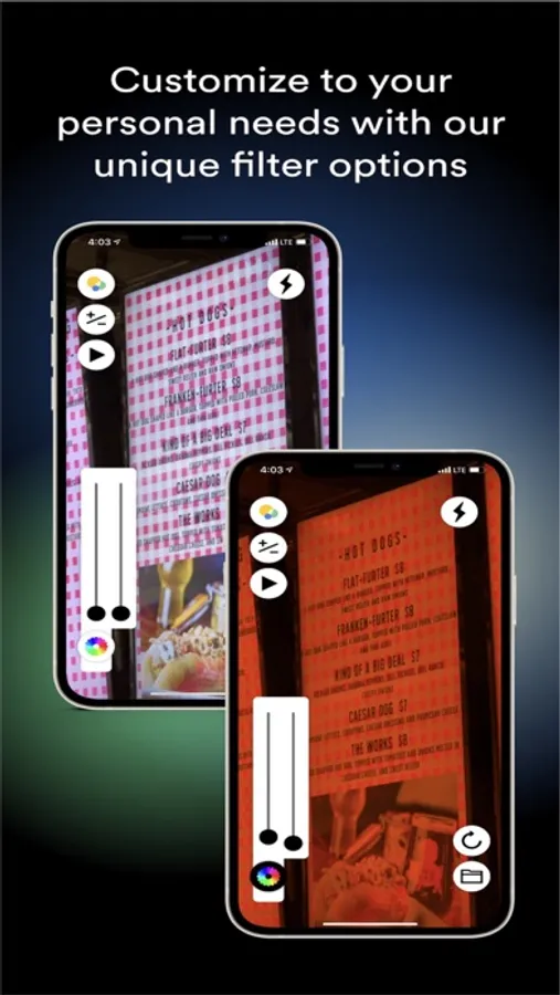 Adjust contrast, exposure, color inversion and more in real time to customize the way you see the world to you needs.