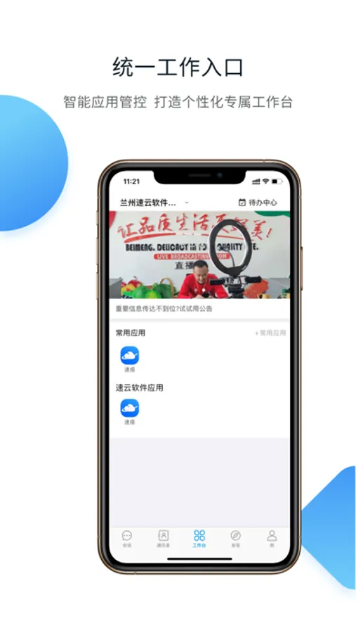速云,是速云软件依托全新的设计理念,全新的管理思想,专为中国企业打造的移动智能协同办公平台,平台集中组织管理、协同办公于一体,多端互通、数据共享,实现企业办公跨部门、跨地域高效协同、移动智能,平台支持企业个性化应用部署及系统集成,具有强大的互操作性和灵活的可扩展性,帮助企业打造专属协同办公办公平台,赋能企业数字化转型升级。